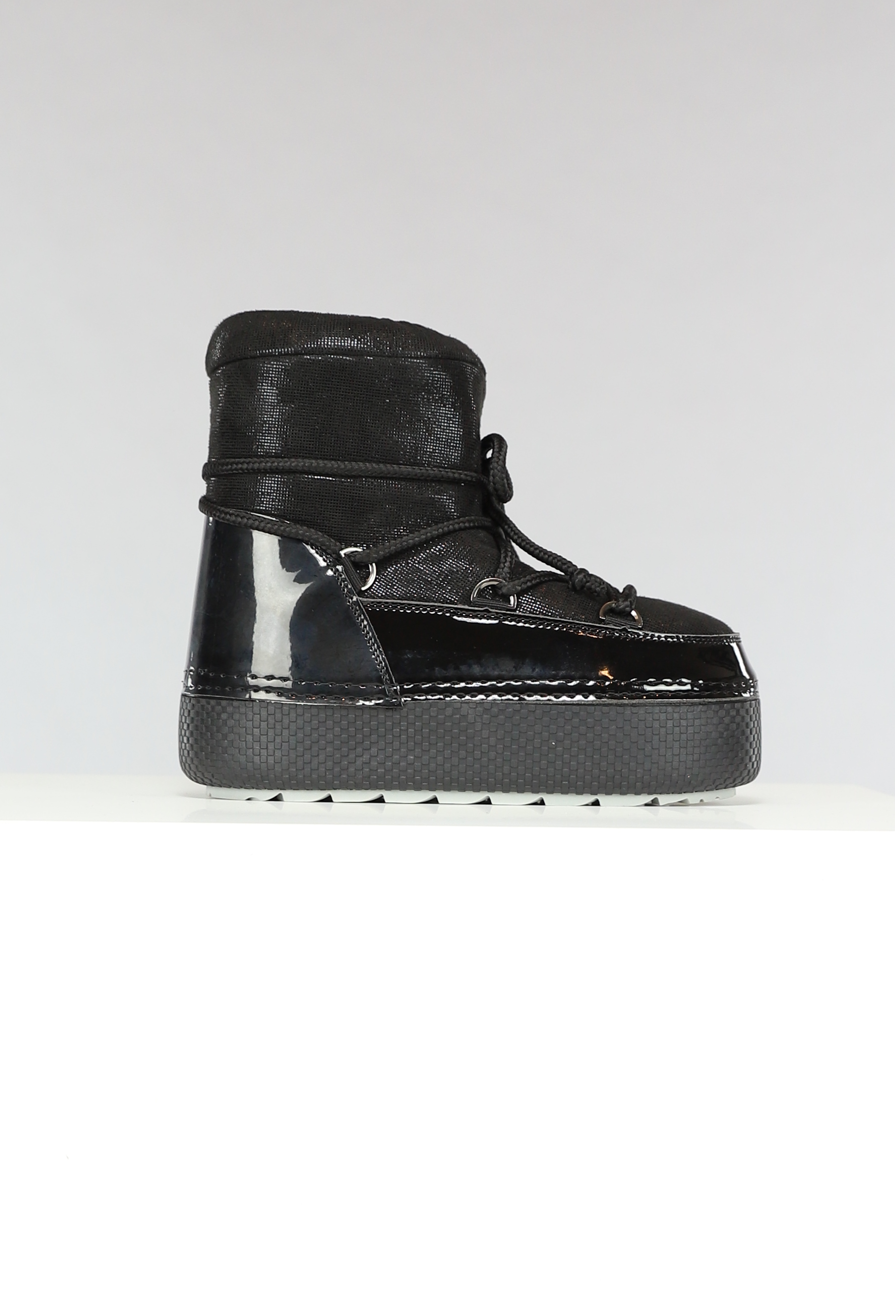 Lage Zwarte Glitterende Snowboots met Lak Detail Lees meer