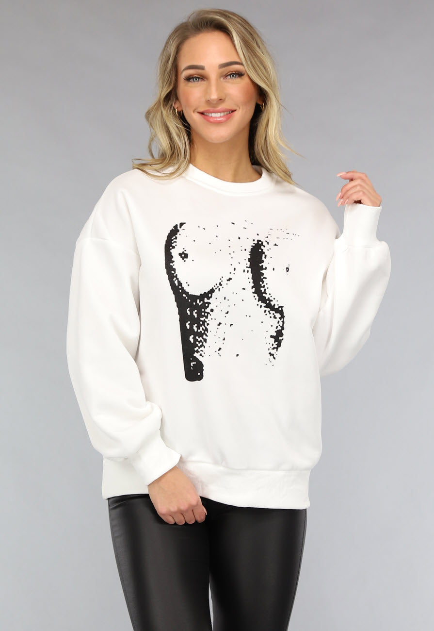 Deze heerlijke trui is gemaakt van een zacht, warm stofje. De binnenkant is heerlijk zacht en zal je zeker warm houden. De trui heeft een crewneck model en heeft lange mouwen. Aan het uiteinde van de mouwen en aan de onderkant zitten boorden met een ribstof. De trui is voorzien van een boob print.