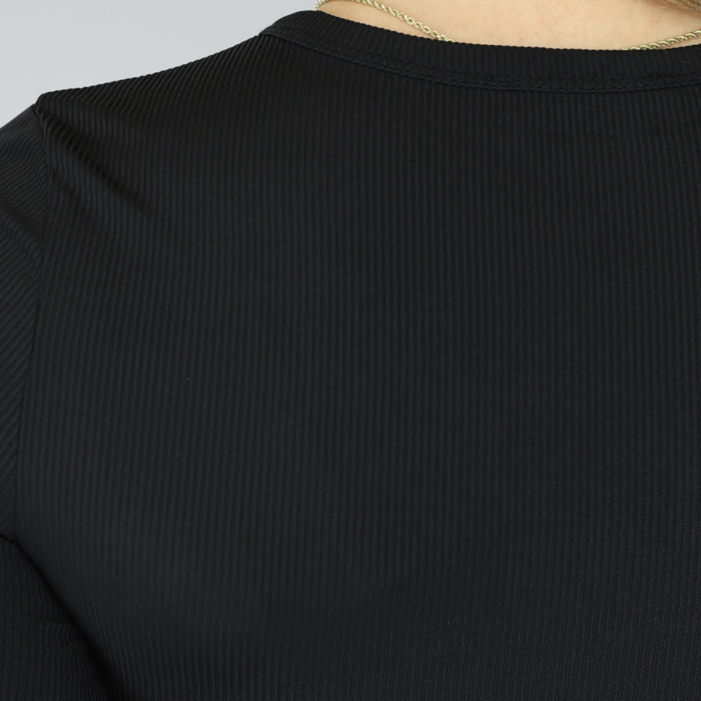 De jurk bevat veel stretch en is gemaakt van een zachte ribstof. De jurk heeft lange mouwen en de jurk zelf komt tot over de knieën.