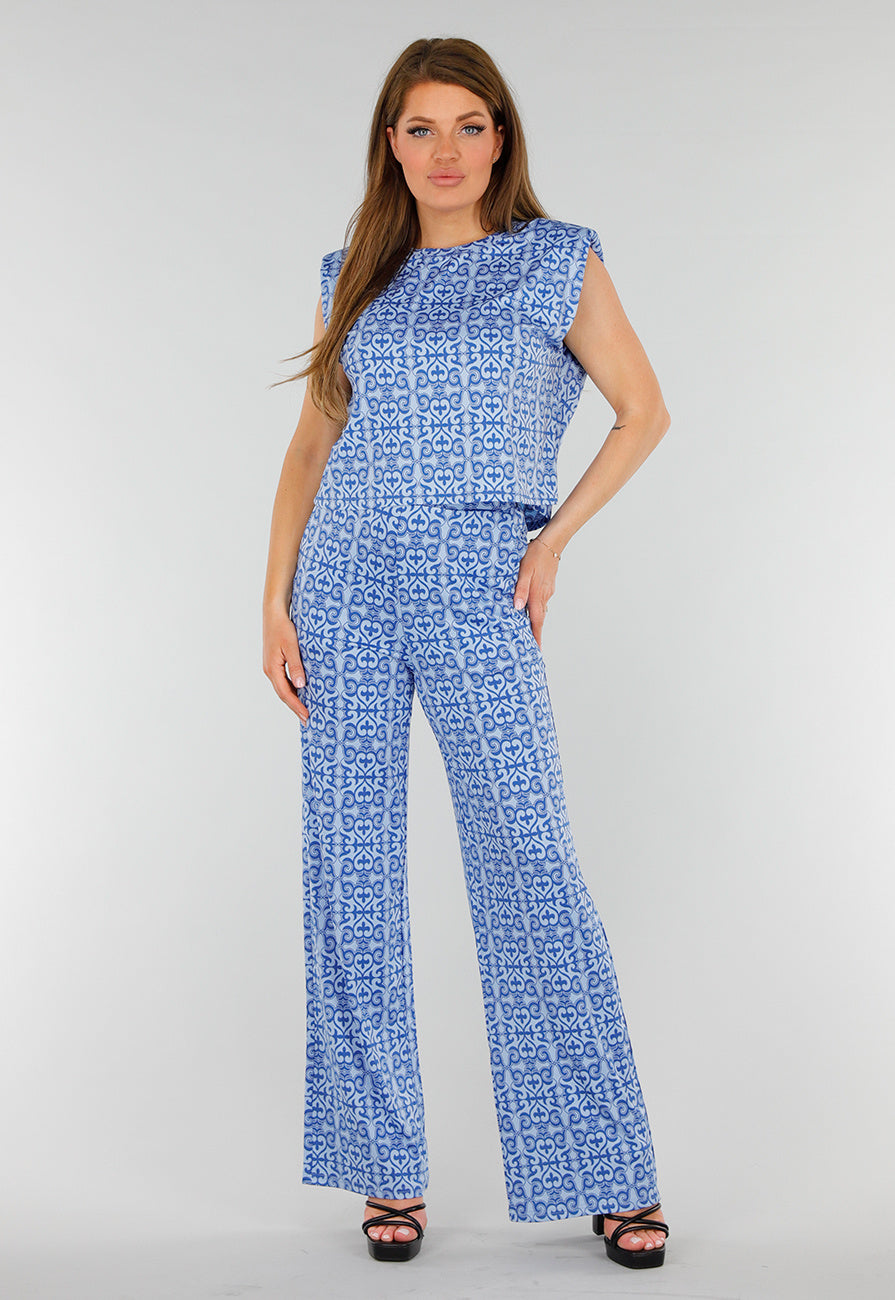 Deze mouwloze barokprint top met schoudervulling biedt een comfortabele loose fit. De top is voorzien van een zachte en ademende stretch stof die ideaal is voor de zomerse dagen. Perfect te combineren met de bijpassende broek voor de complete look.
