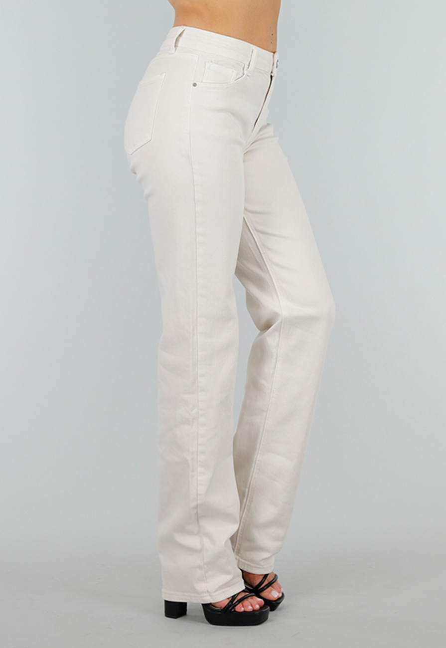 Deze cremekleurige denim jeans is speciaal ontworpen in een tall fit, ideaal voor langere meiden. De broek heeft een straight leg en een mid-waist pasvorm. Ook is de jeans voorzien van riemlussen en voor-en achterzakken. De stof is stevig met lichte stretch. Dankzij de rechte pijpen is dit model makkelijk te combineren met zowel sneakers als hakken. Perfect voor wie op zoek is naar een basic met extra lengte.
