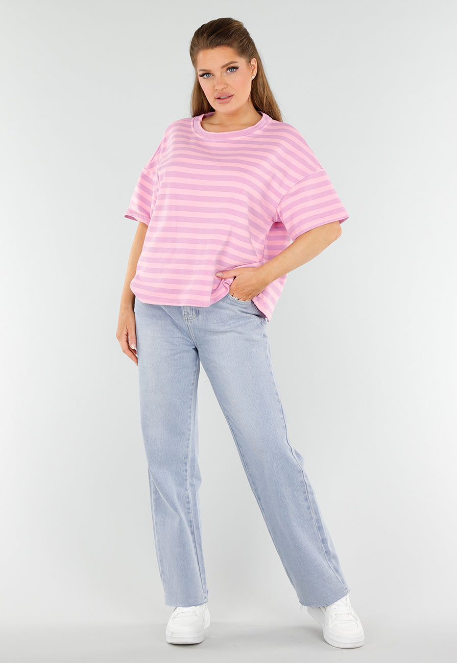Gestreept T-Shirt in Lichtroze en Lila