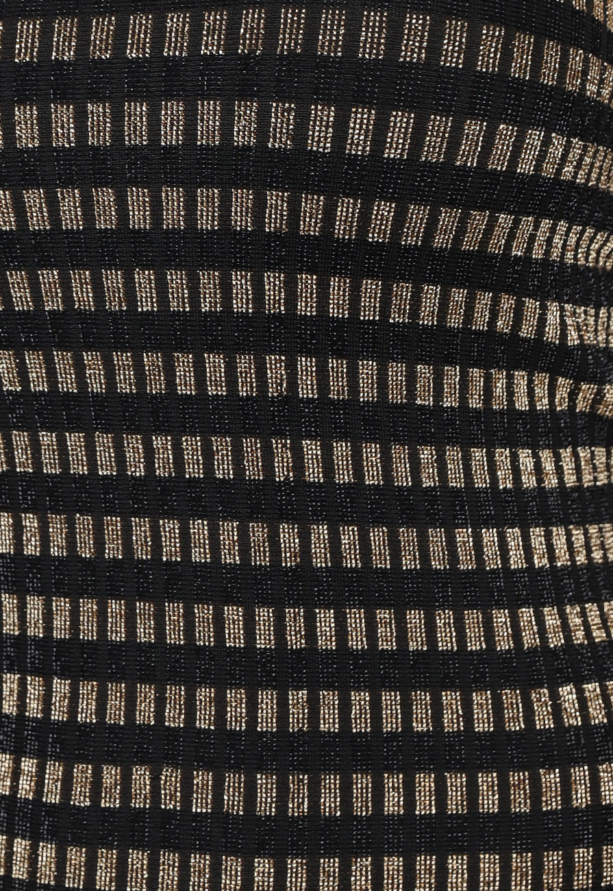 Gouden Gestreepte Strapless Midi Jurk