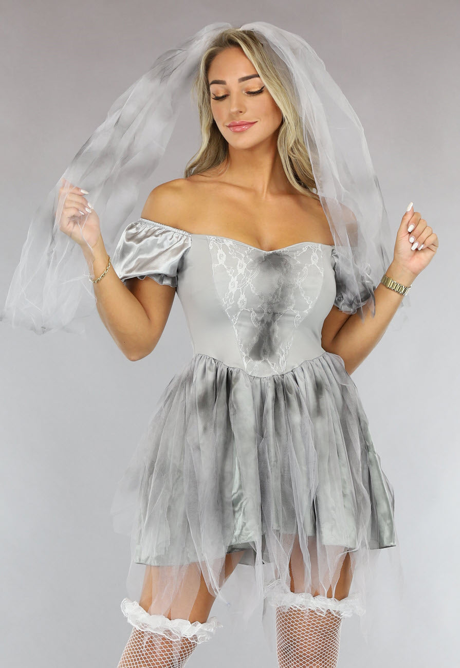 Grijze Zombie Bruid Kostuum