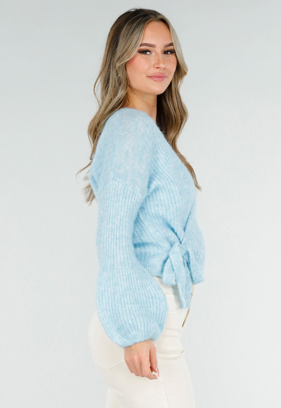 Lichtblauwe Wikkel Vest met Strikdetail