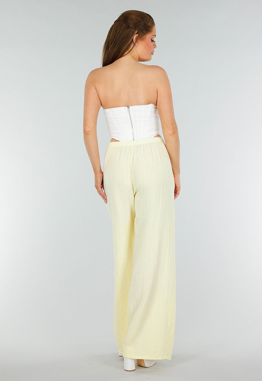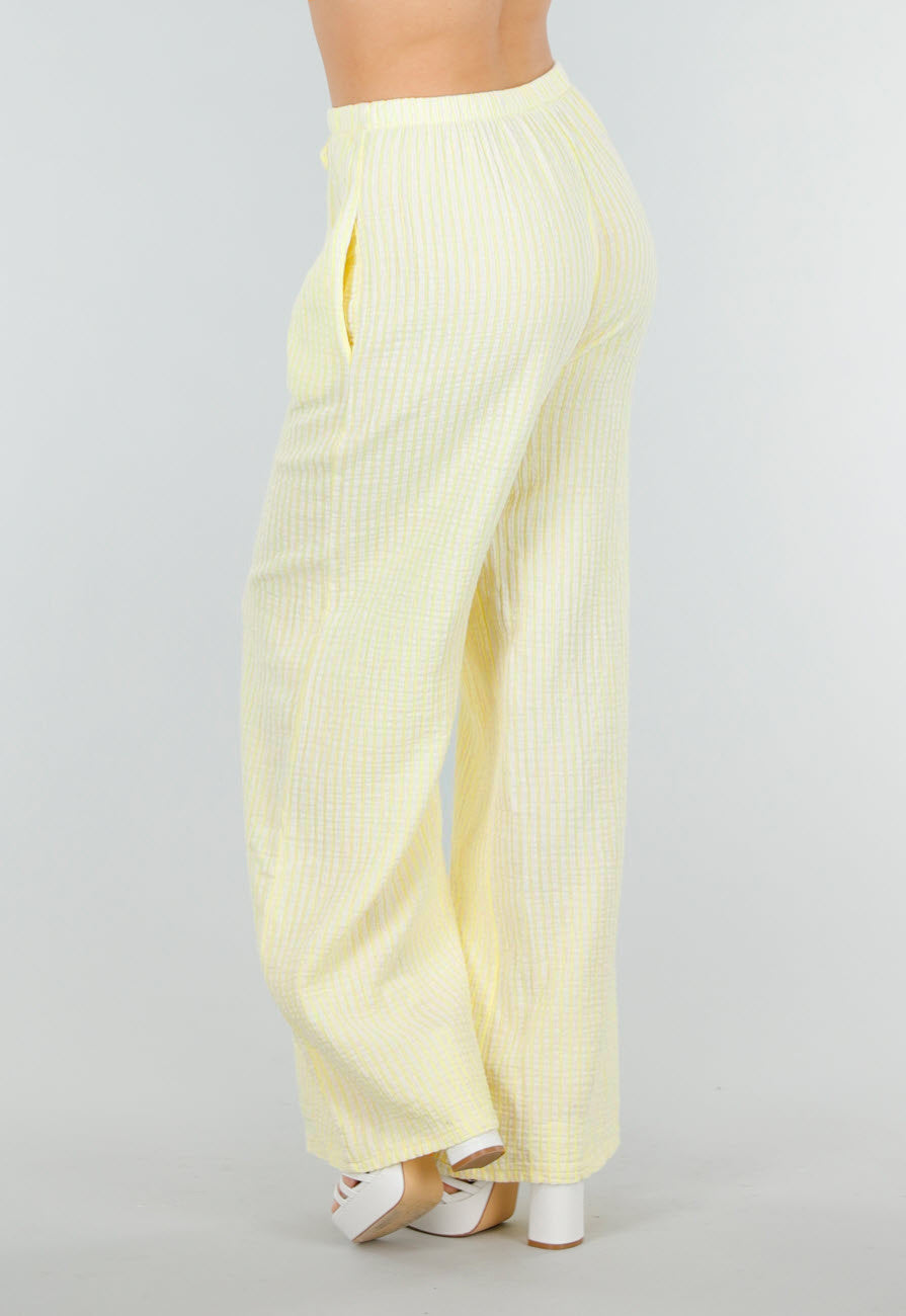 Lichtgele Broek van Katoen met Strepen