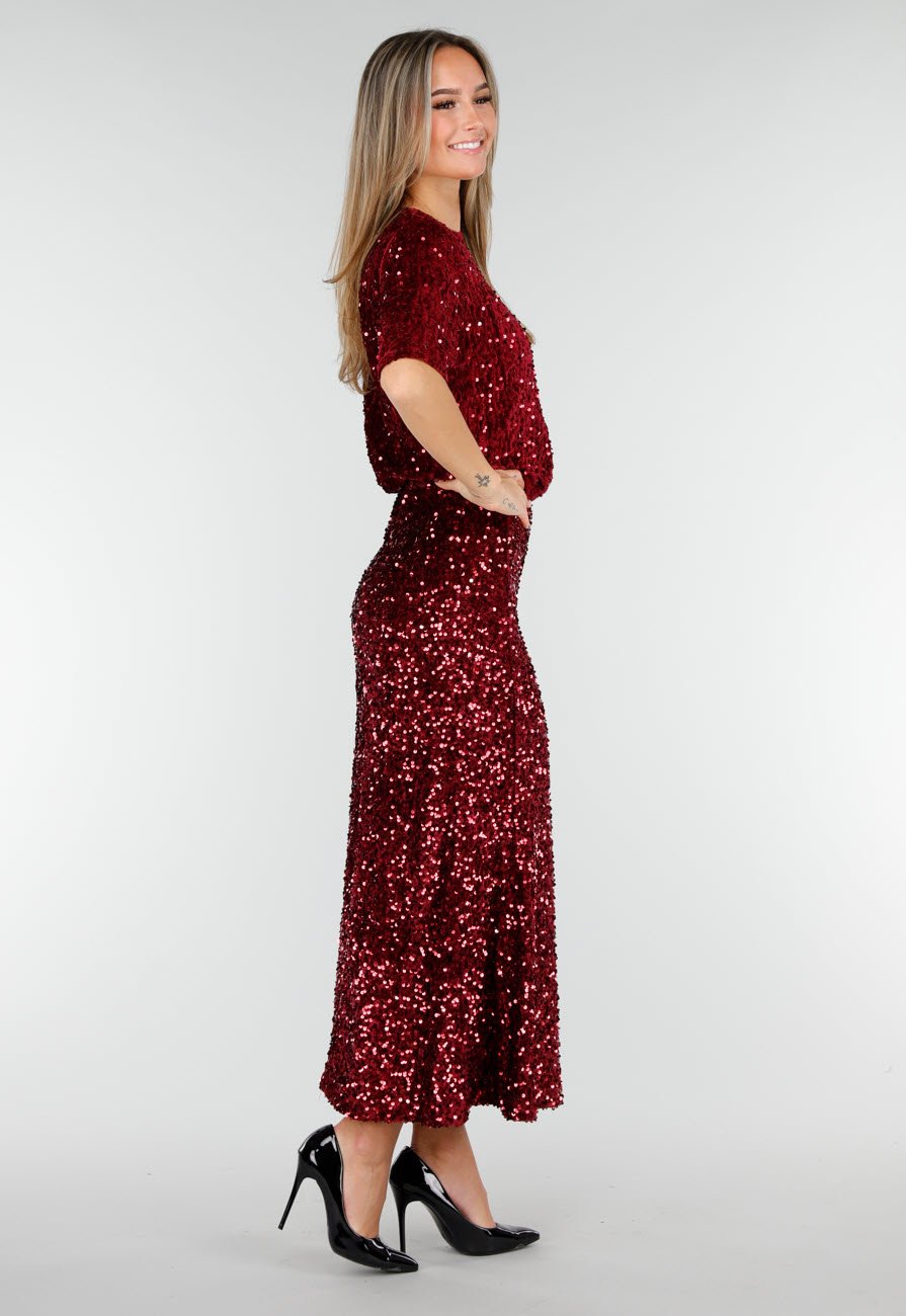 Rode Pailletten Midi Rok