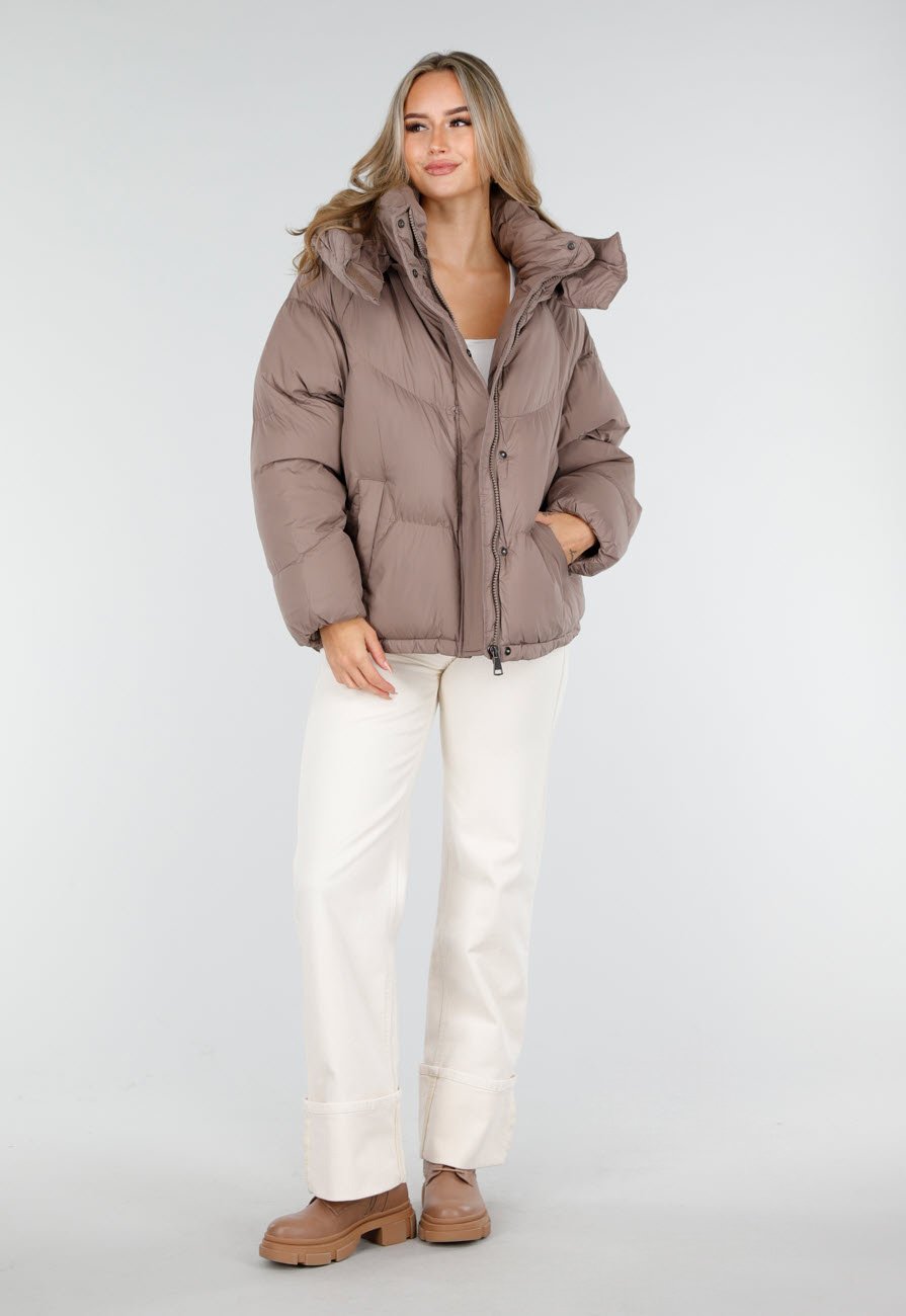 Taupe Pufferjas met Capuchon