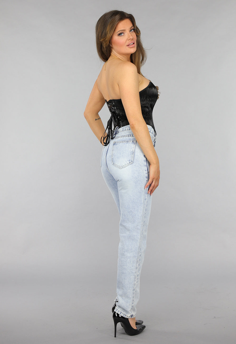 OP=OP! Zwarte Glanzende Korset Top Maat XS
