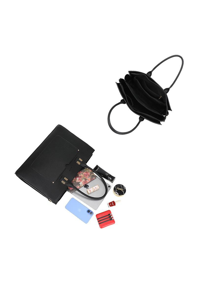 Deze zwarte laptoptas combineert functionaliteit met een stijlvolle uitstraling. Het model heeft stevige dubbele handvatten en wordt geleverd met een afneembare schouderband voor extra draaggemak. De tas biedt voldoende ruimte voor een 15 inch laptop en beschikt over meerdere compartimenten, waaronder een voorvak en een ritsvak aan de achterzijde. De gestructureerde vorm en het tijdloze design maken deze tas ideaal voor werk, studie of zakelijke afspraken.