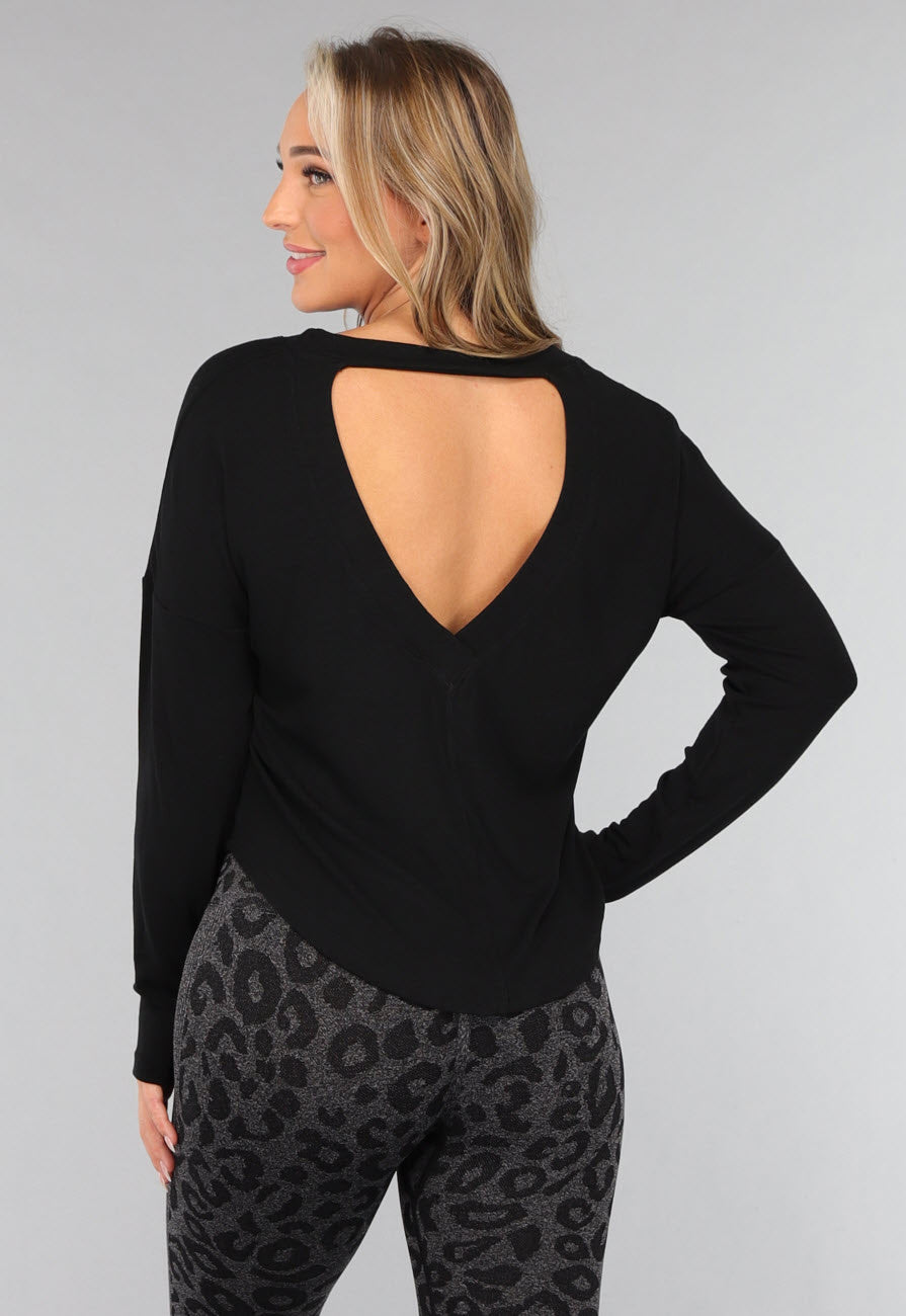 Deze top is gemaakt van een fijne losse en luchtige ribstof. Hij heeft lange mouwen en een ronde kraag met boord. De top is losvallend en aan de onderzijde rond afgewerkt. De rug heeft een open detail voor een unieke uitstraling.