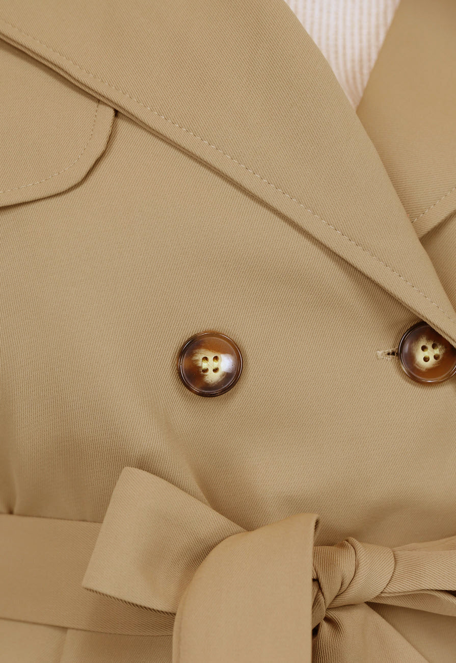 NEW2102 Korte Trenchcoat met Gesp Details in Taupe Maat S/M