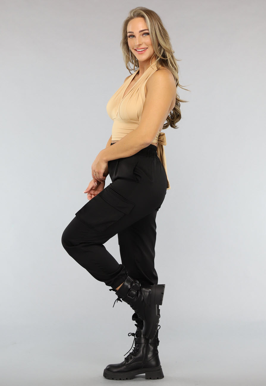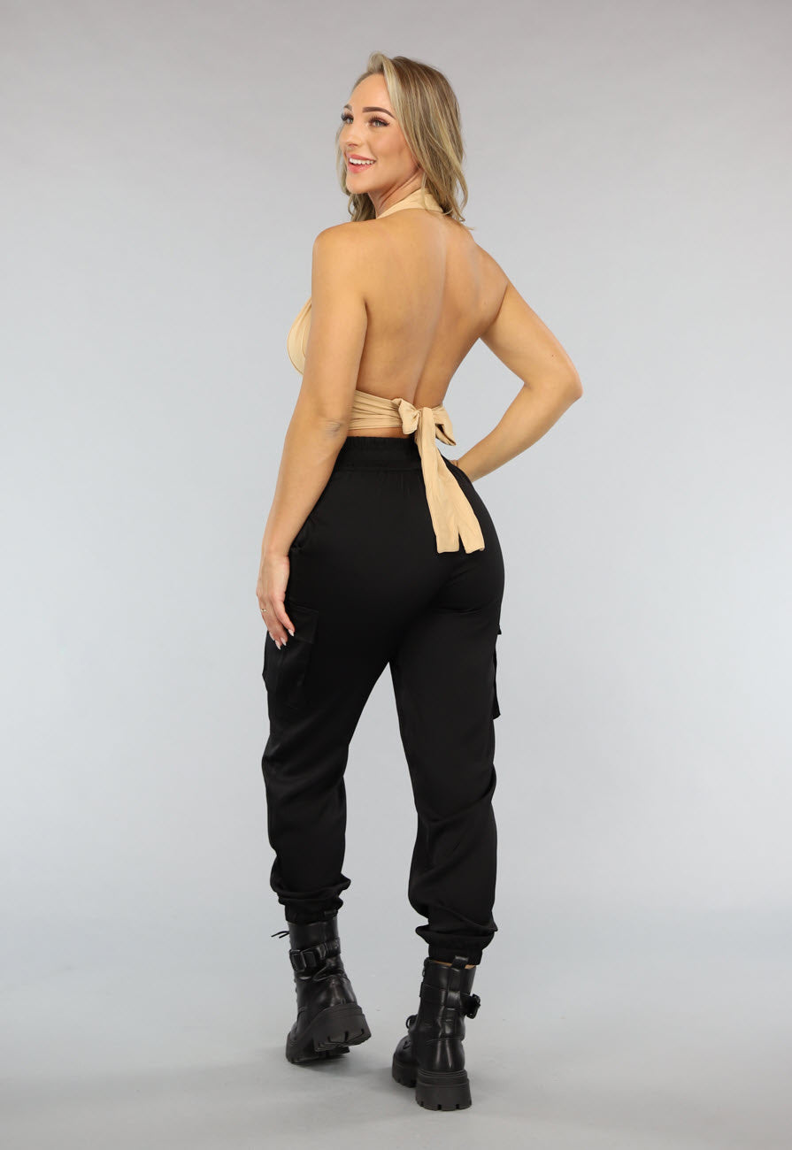 Deze leuke crop top is gemaakt van een stretch stof waardoor hij erg comfy draagt. Hij sluit mooi aan en heeft een halter model. Het topje heeft een kort model en heeft aan de achterkant een strikdetail die je zelf kunt strikken.