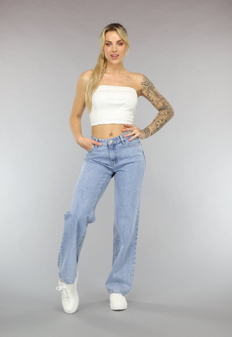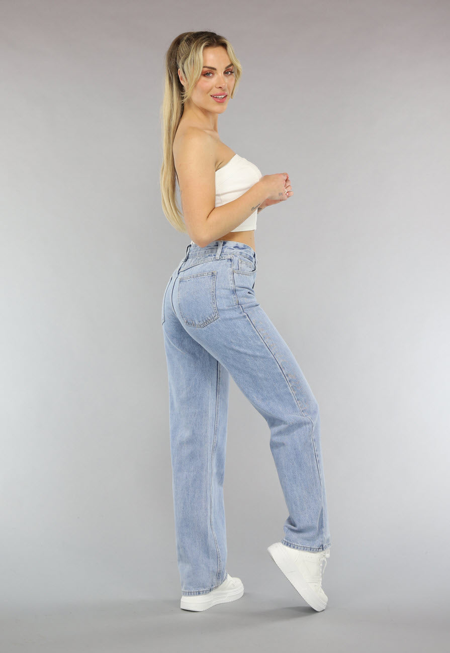 Lichtblauwe Washed Mom Fit Spijkerbroek
