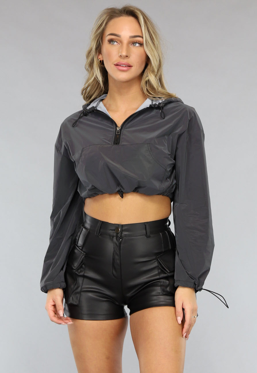 Dit toffe windjack is gemaakt van een reflecterende stof. Het jasje heeft een cropped model en heeft een capuchon. Je kunt de jas gemakkelijk hoger sluiten aan de hand van de ritssluiting aan de bovenkant, deze kun je ook open dragen. De jas heeft lange mouwen met een elastiek aan de uiteindes. Tevens is de jas voorzien van elastiek onderaan de jas en bij de capuchon, deze kun je ook strakker aantrekken. Bovendien is de jas voorzien van twee kleine steekzakken aan de voorkant.