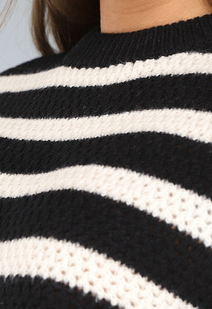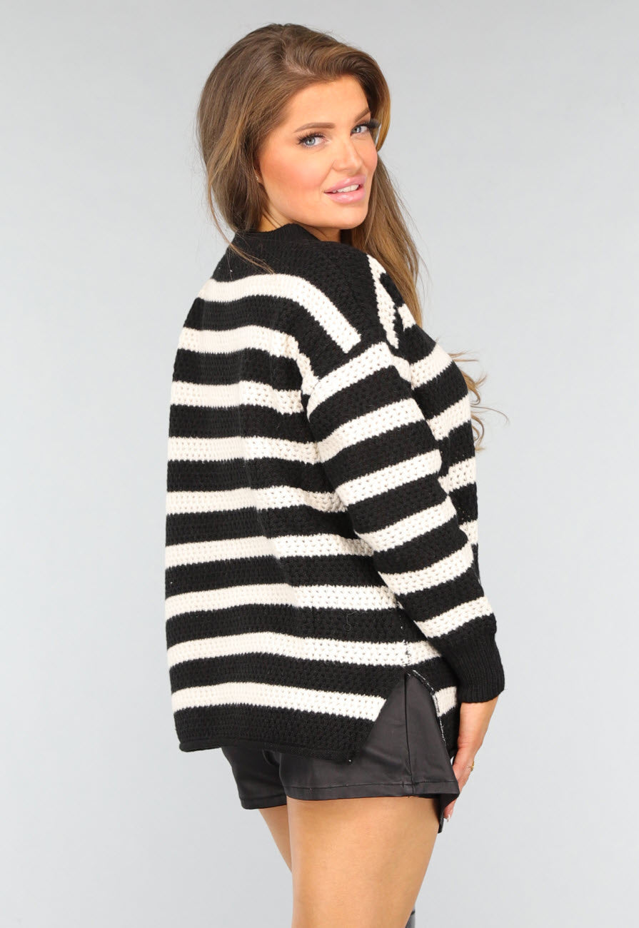 Zwarte Gebreide Gestreepte Trui