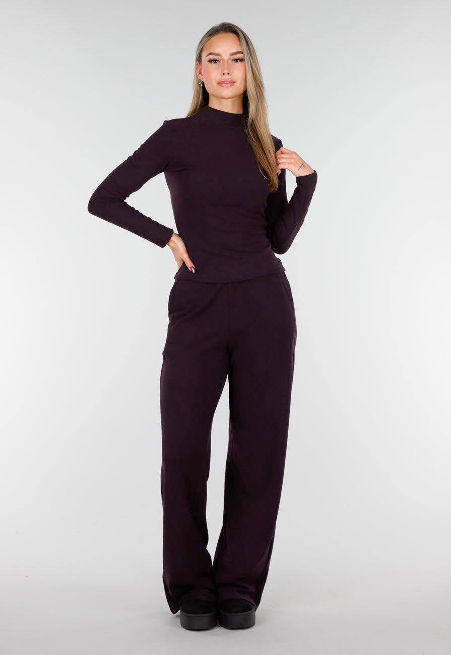 Deze auberginekleurige top is gemaakt van een zachte stretch lightweight fleece stof die comfortabel aansluit op het lichaam. De lange mouwen en subtiele hoge halslijn zorgen voor een stijlvolle, strakke look. Perfect als basic top voor elke dag of als laagje onder een jasje.