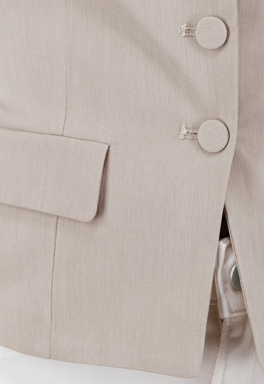 Beige Blazer Look Top met Binnen Voering