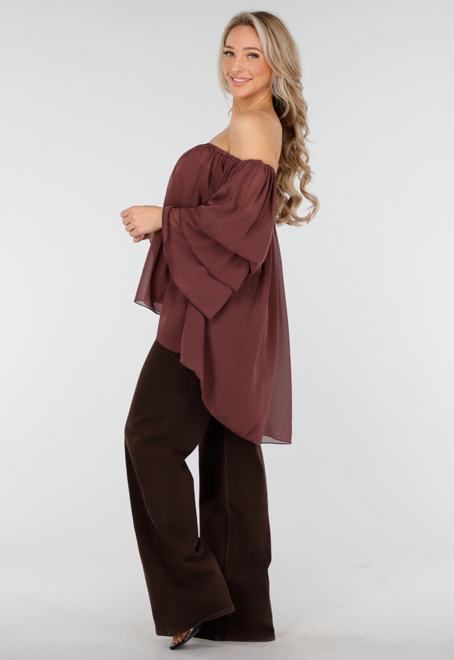 Donkerbruine Off Shoulder Blouse
