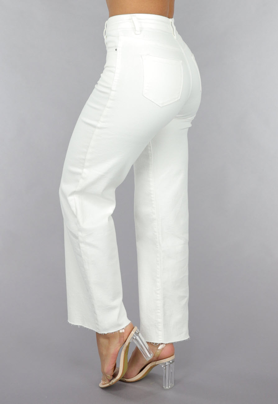High Waist Straight Leg Witte Petite Jeans