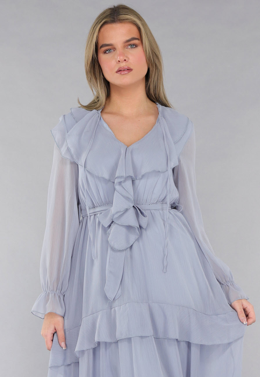 Maxi Jurk in Blauw met Ruffles Lees meer