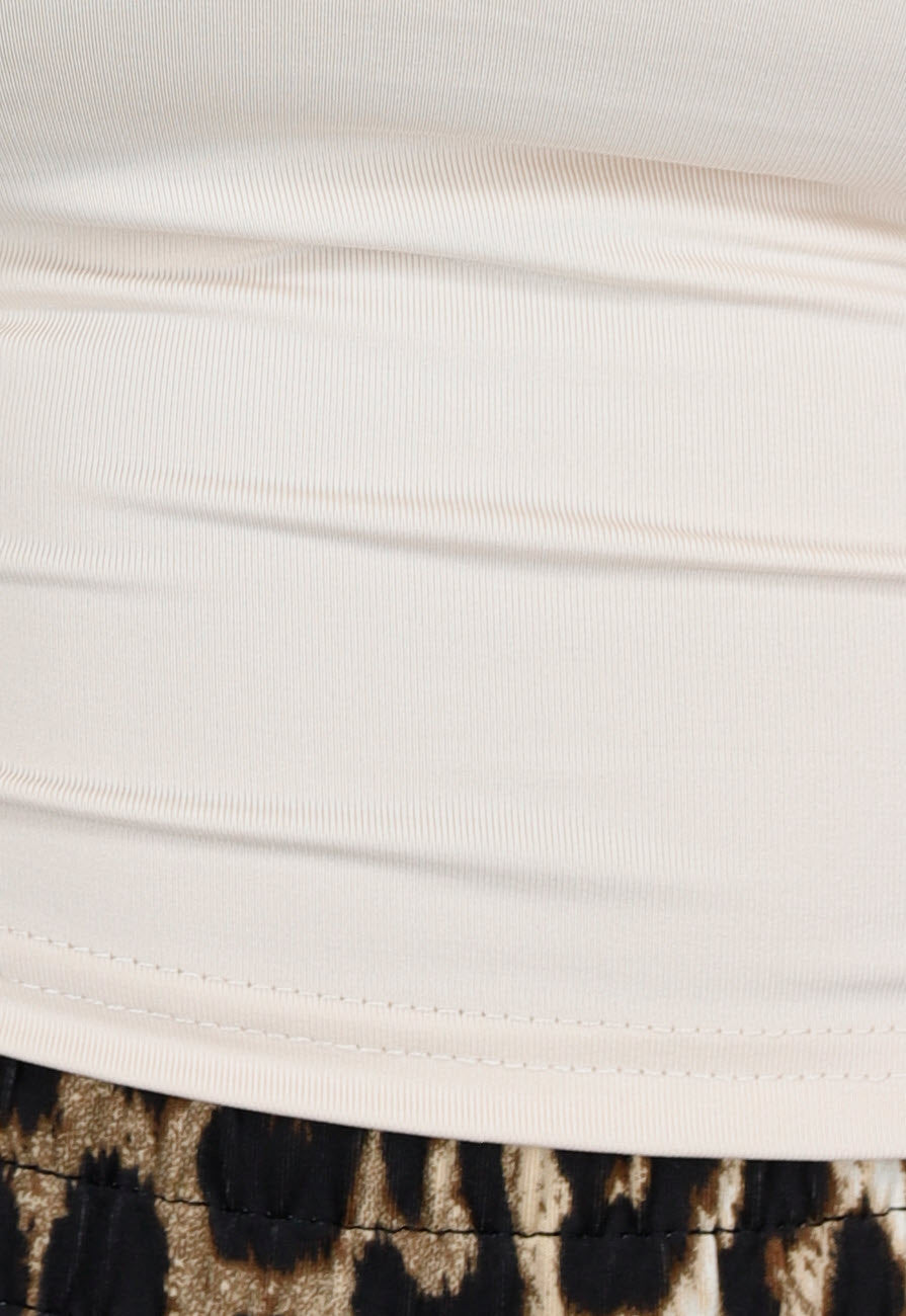 One Shoulder Crop Top Beige