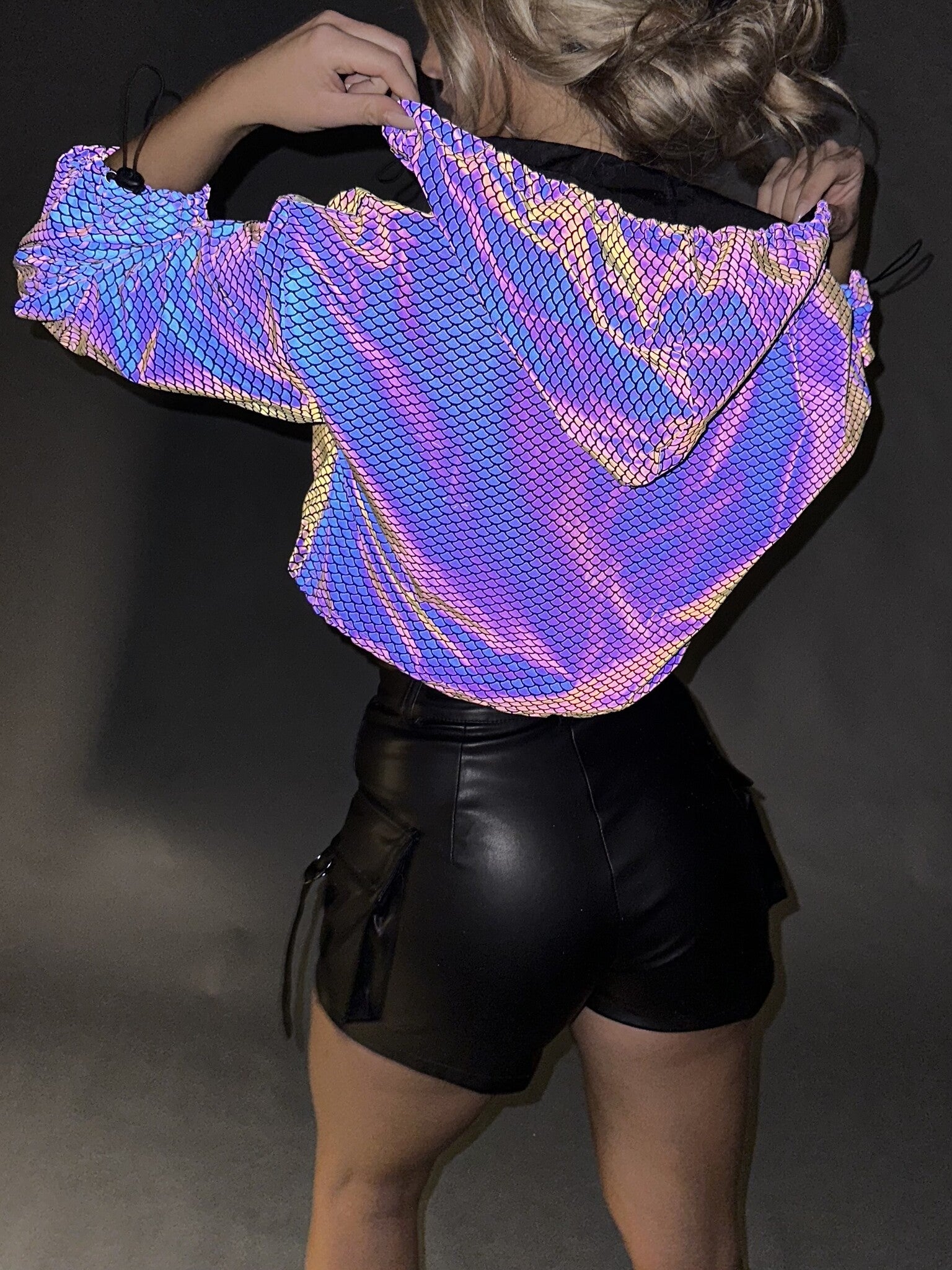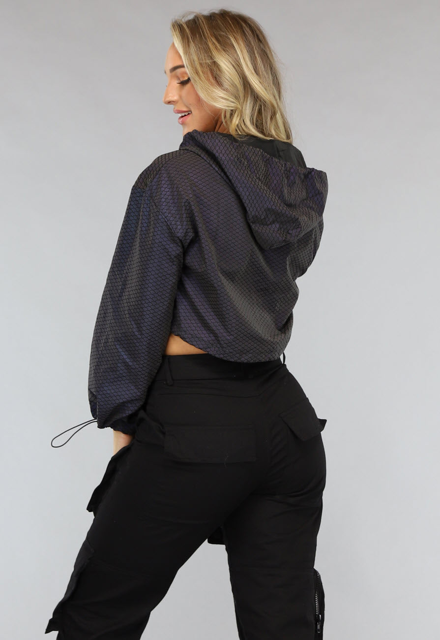 Reflecterend Cropped Windjack met Schubben Patroon