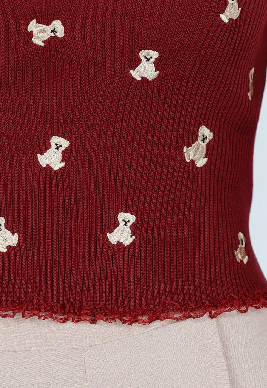 Rib Top met Teddybeertjes Rood