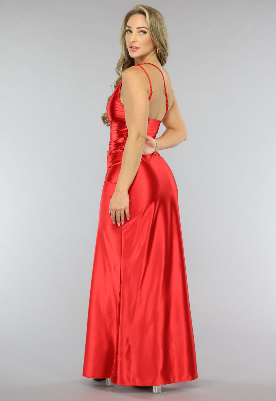 Rode Satijnen Avondjurk