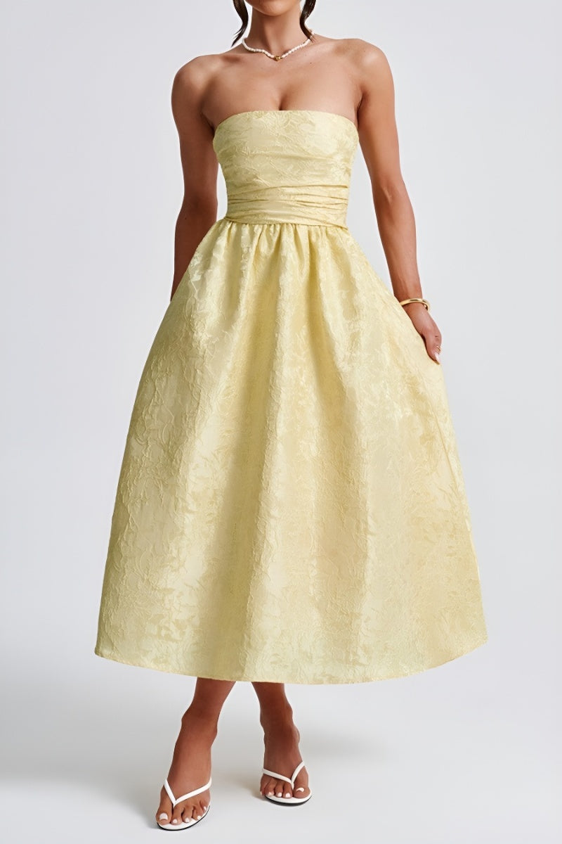 Strapless Butter Yellow Jacquard Jurk