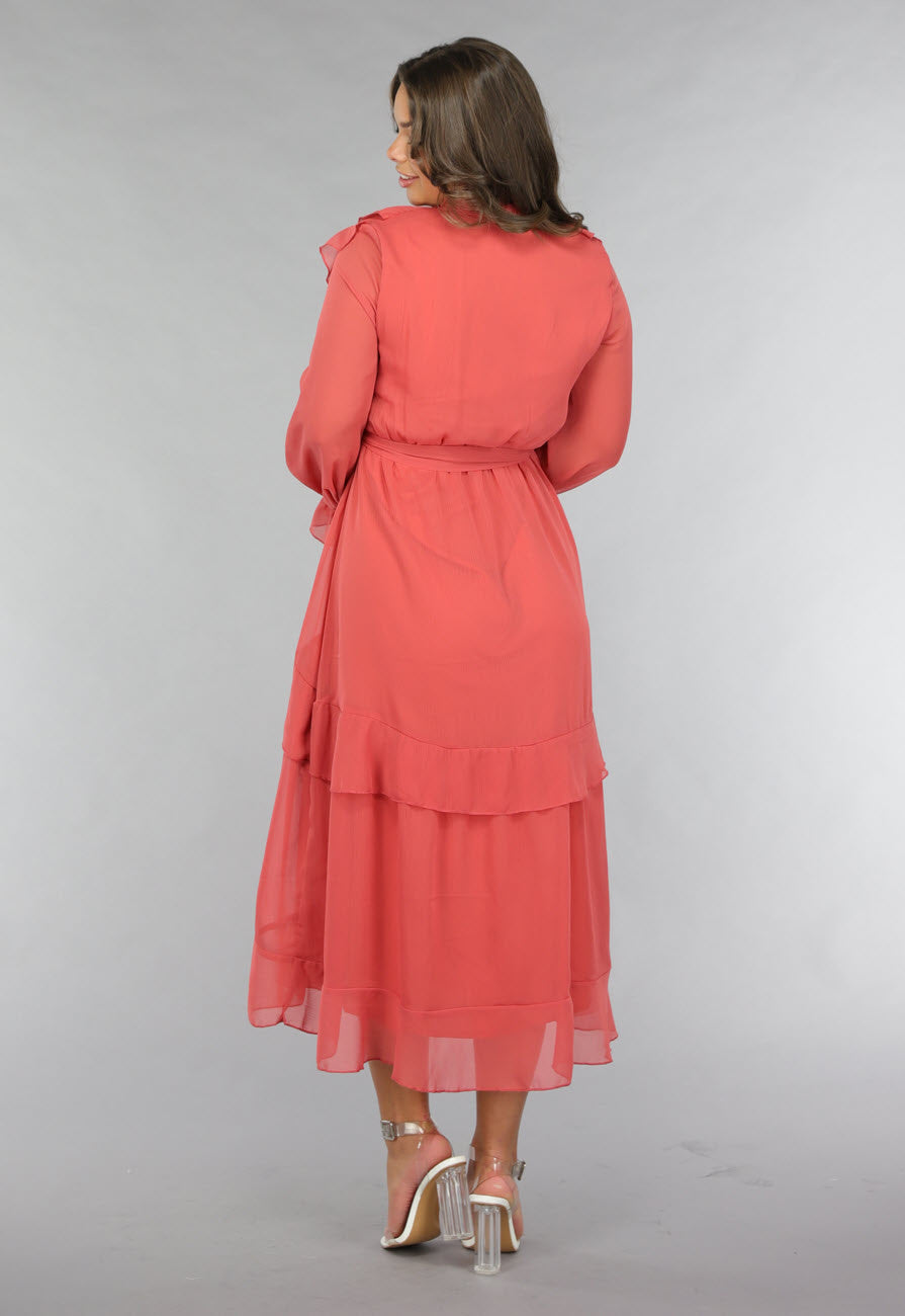 Zalmroze Ruffle Chiffon Maxi Jurk