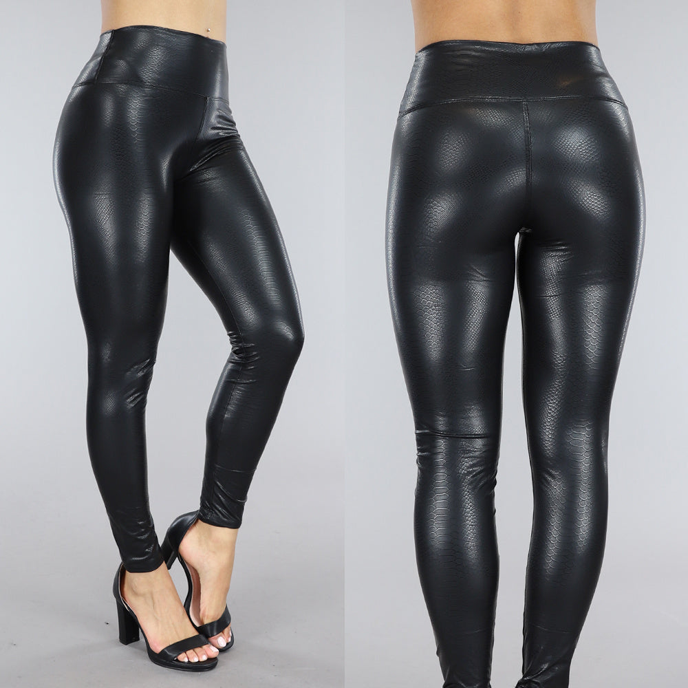 Zwarte Lederlook Legging