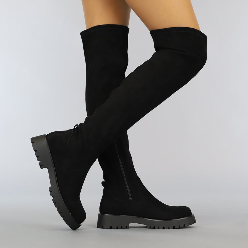 Zwarte Suède-Look Overknee Laarzen met Grove Zool