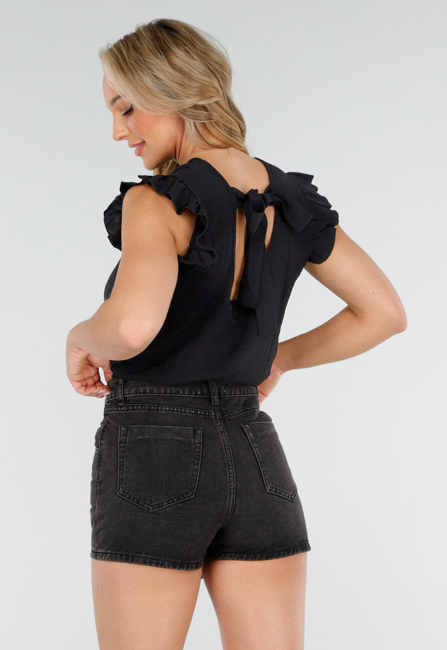 Zwarte Top met Volants en Strik