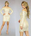 Dieses schicke Bodycon-Kleid ist schulterfrei und hat einen überschnittenen Rand. Der Halsausschnitt ist mit einem elastischen Rand versehen, der die Schulterfreiheit garantiert. Das Kleid hat einen Netzüberzug mit goldfarbenen Stickereien. Das Kleid hat eine gute Passform und fällt bis knapp über das Gesäß.