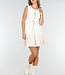 Cremefarbenes ärmelloses Oberteil mit goldenen Knöpfen und Schlitz