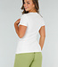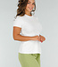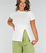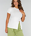 Dieses weiße Oberteil ist aus einem Stretch-Material gefertigt, das sich dem Körper anpasst und eine eng anliegende Passform bietet. Das Oberteil hat kurze Ärmel, einen Rundhalsausschnitt und einen Schlitz auf der Vorderseite. Dank des dehnbaren Stoffes bleibt das Oberteil bequem und formstabil. Perfekt für einen lässigen Look oder einen eleganten Anlass.