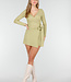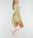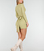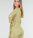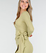 Dieses olivgrüne Oberteil ist aus einem weichen, dehnbaren Stoff gefertigt und hat vorne einen Wickelausschnitt. Der V-Ausschnitt ist tief geschnitten und die langen Ärmel liegen eng an. Der Stoff hat eine leicht gerippte Struktur und fällt geschmeidig. Kombinieren Sie es mit dem passenden Skort für ein komplettes Set.