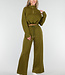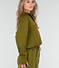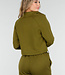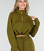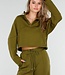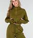Olive Green Cropped Lounge Sweater mit halbem Reißverschluss und hohem Kragen
