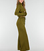 Dieser olivgrüne Pullover ist aus einem weichen, geschmeidigen Stoff mit sportlichem Look gefertigt. Der Pullover hat einen halben Reißverschluss vorne, einen hohen Kragen und abgesenkte Schulternähte für eine entspannte Passform. An beiden Seiten befinden sich verstellbare Kordeln, mit denen der Saum für einen verkürzten Look leicht gerafft werden kann. Der Saum ist elastisch, sodass der Pullover bequem sitzt. Der Stoff hat eine glatte, matte Oberfläche in einem tiefen Olivgrün.