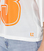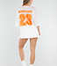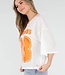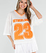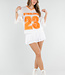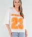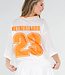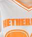 Dieses sportliche Jersey-Oberteil in Weiß mit auffälligen orangefarbenen Details hat einen auffälligen „Netherlands”-Aufdruck mit der Nummer 23. Das Oberteil ist aus atmungsaktivem Mesh-Jersey-Stoff gefertigt, der für ein luftiges und angenehmes Tragegefühl sorgt. Das Modell hat eine lockere Passform mit weiten kurzen Ärmeln und einem V-Ausschnitt mit kontrastierendem orangefarbenem Rand. Der leicht transparente Stoff und das sportliche Design verleihen dem Top einen trendigen und lässigen Look. Ideal zu Jeans, Shorts oder einem Rock, aber natürlich auch perfekt für den Königstag oder als Fan der Weltmeisterschaft!