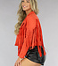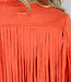 Dieser fabelhafte Mantel hat eine normale Passform und Rüschen am Rücken und an den Ärmeln. Die Jacke hat lange Ärmel und einen Reverskragen und ist aus Wildleder gefertigt. Die Jacke lässt sich gut mit Cowboystiefeln kombinieren!