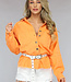 Diese Bluse ist aus einem robusten Denim-Stoff gefertigt. Die Bluse hat einen Kragen und zwei Brusttaschen auf der Vorderseite der Jacke. Die Bluse hat 7 Knöpfe, mit denen man sie schließen kann.