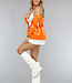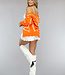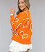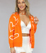 Orangefarbene Strickjacke mit Knöpfen und Herzchenaufdruck