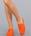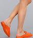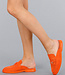 Diese Slipper sind aus weichem Wildlederimitat in einem auffälligen Orange gefertigt. Ein kleines Metalldetail auf dem Rist sorgt für einen zusätzlichen modischen Touch. Die Schuhe haben einen offenen Absatz, so dass sie wie Pantoletten angezogen werden können. Die leichte und flexible Sohle sorgt für zusätzlichen Komfort beim Gehen. Die abgerundete Spitze und die sauberen Nähte verleihen ihnen einen zeitlosen Look. Ideal für einen modischen und bequemen Look und auch sehr schön für den King's Day!