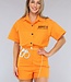 Der Sträflingsanzug hat kurze Ärmel, ist mit einem Knopfverschluss versehen und hat einen hohen Kragen. Um das Kostüm noch realistischer zu machen, hat es die Registrierungsnummer auf der Brust und den Gefängnistext auf dem Rücken.