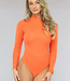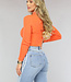 Dieser Rippenbodysuit hat lange Ärmel und einen hohen Ausschnitt mit kleinem Rollkragen. An der Brust und an der Taille befindet sich ein Rippendetail, das Ihre Taille schön betont. Das Unterteil ist mit einem Tanga-Detail versehen und hat unten einen Druckknopfverschluss, der aus zwei Druckknöpfen besteht. Der Rippenstoff verleiht dem Body ein geripptes Muster.