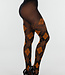 Strumpfhose aus transparentem, dunklem Material mit einem Karomuster in Orange, Braun und Schwarz. Das Muster verläuft gleichmäßig über das gesamte Bein und hat ein klassisches Argyle-Design. Die Strumpfhose hat eine figurbetonte Passform und einen elastischen Bund für einen stabilen Sitz.