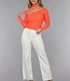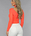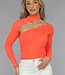 Dieses Oberteil ist aus weichem, dehnbarem Netzstoff gefertigt und hat lange Ärmel. Das Oberteil ist schulterfrei und hat einen losen Ärmel, wodurch es eine asymmetrische Form erhält. Außerdem ist das Oberteil neonorange mit lustigem Glitzer, was es perfekt für den King's Day macht.