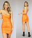 Dieses trägerlose Kleid ist aus einem lederähnlichen Material gefertigt und hat eine gute Passform. Es ist leicht dehnbar und hat einen verdeckten Reißverschluss an der Seite. Das Kleid fällt bis knapp über das Gesäß und lässt sich gut mit Heels, Turnschuhen oder auch Booties kombinieren!